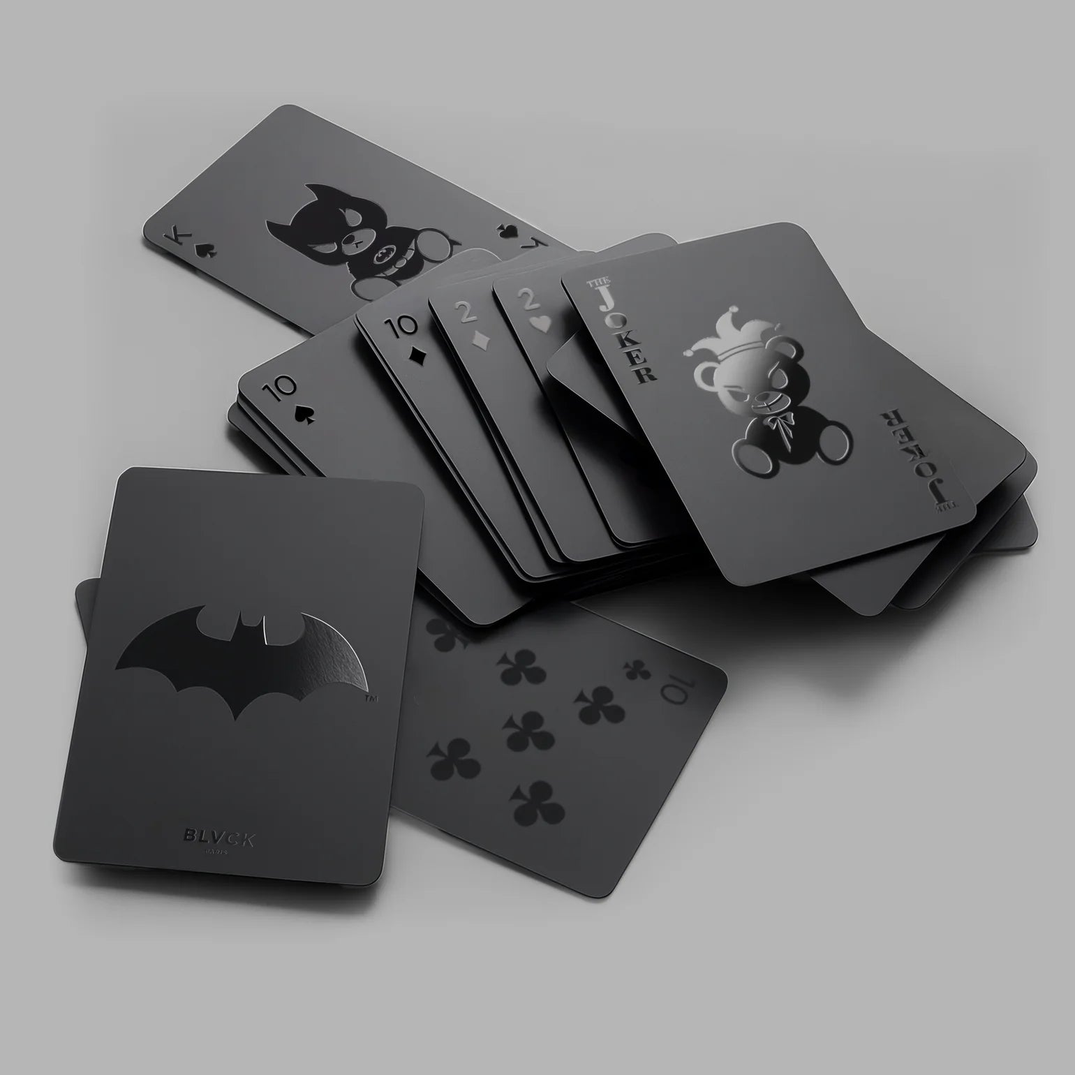 The deck features iconic Batman-inspired details and comes packaged in a sleek matte black case embossed with the Batman x Blvck logo. Perfect as a collectible, a unique gift, or to add a touch of dark elegance to your next game night.