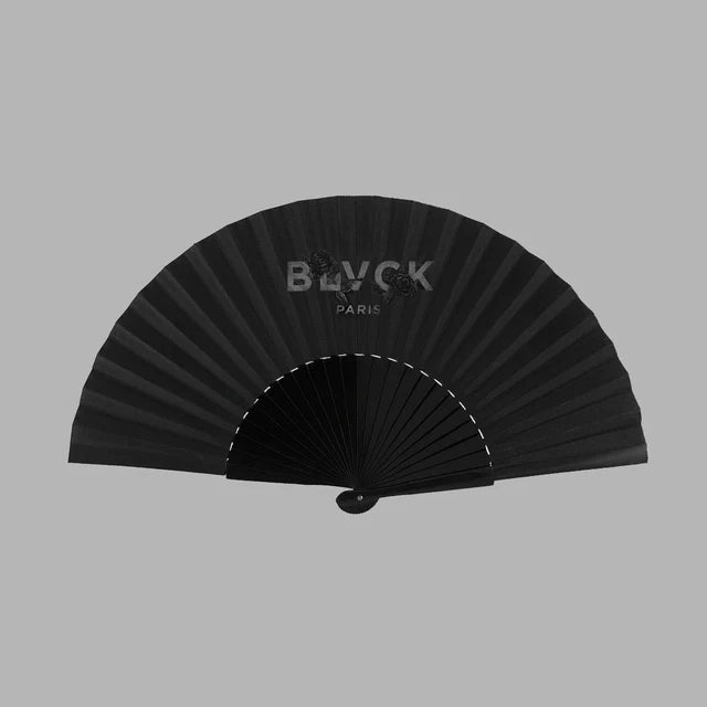 The sleek and functional Blvck Flower Logo Folding fan is the perfect accessory for beating the heat. Crafted from high-quality bamboo, this stunning item can even double as a stylish wall or shelf decoration.