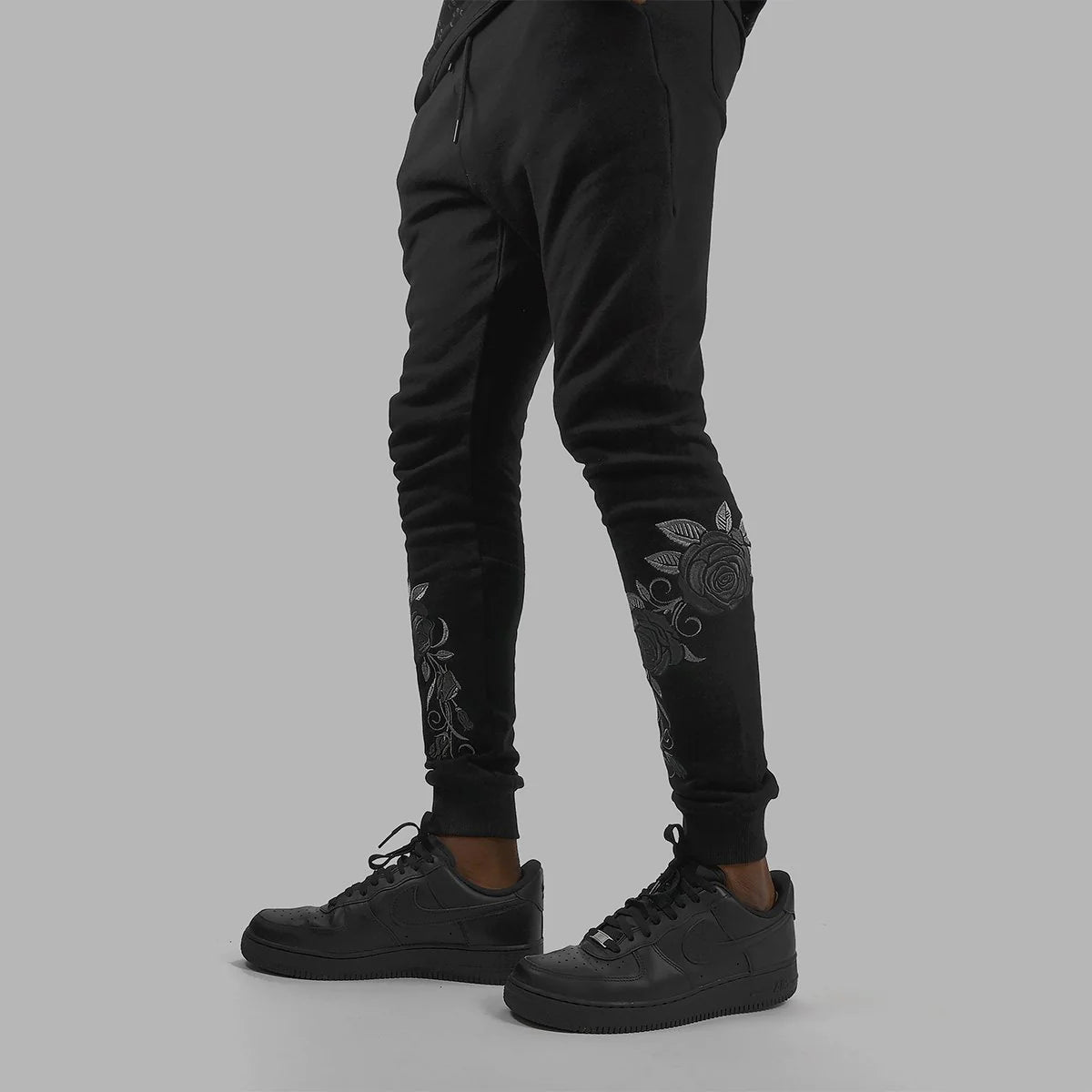 Part of the BLVCK03 Collection, the 'Blvck Roses Sweats' features a unique embroidered Roses pattern on the outside of both front legs.These sweatpants are perfect for a casual, laidback day.