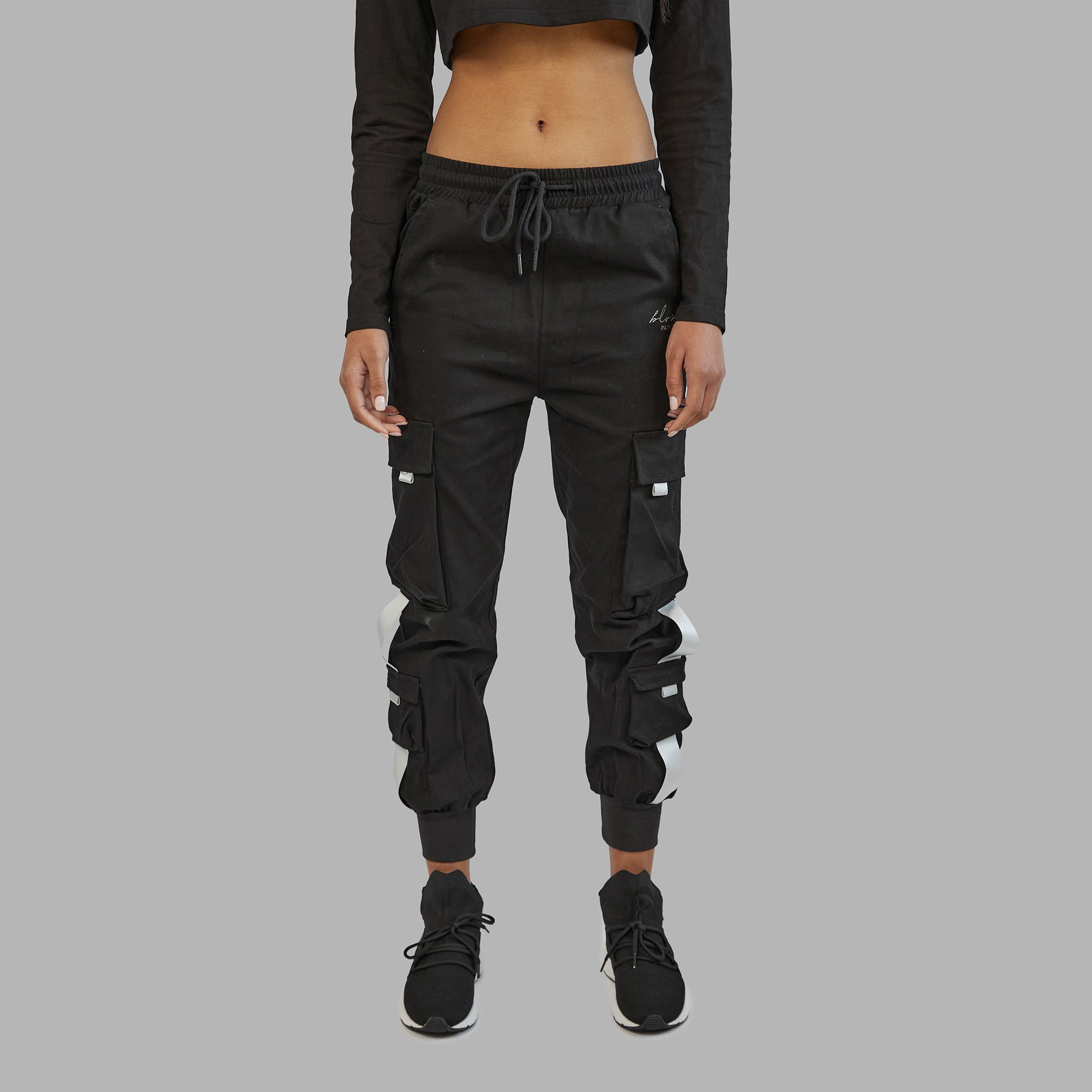 The 'Blvck Tokyo Pants 2.0' features two pockets with the embroidered Blvck logo above the front pocket. These pants have an elastic waist and are perfect for a casual, laidback day. The second version includes silver details.