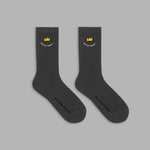 Embroidered with Basquiat’s signature crown, these socks pay homage to the late artist’s rebellious spirit while staying true to Blvck Paris’ minimalist aesthetic. A subtle "Blvck x Basquiat" text detail along the foot adds a refined finishing touch.