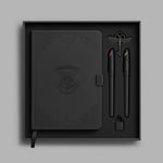 A matte-black feather quill with 3 interchangeable nibs and a pot of white ink, presented in a collectible Hogwarts × BLVCK embossed box. Designed for journaling, calligraphy practice, or a striking desk display.